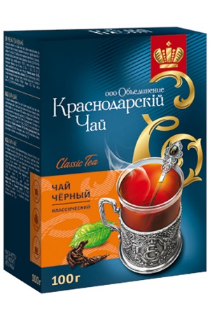 Краснодарский чай черный крупнолистовой, состав: чай черный крупнолистовой. Способ приготовления: 15-20 г чая залить 200мл кипятка (90-95°C), дать настояться 3-5 минут. Пищевая ценность на 100 г продукта: Энергетическая ценность: 414,5кДж/99ккал, Жиры: 0г, Углеводы: 4г, Белки: 20г, Соль: 0г.
