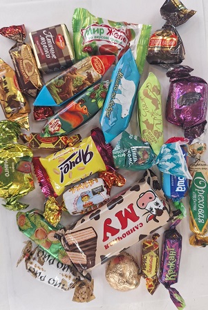 Производство: конфеты только российских фабрик Объединенные кондитеры и других компаний