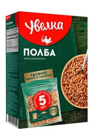 Pirinova kaša Polba 5x80g Uvelka, sestavine: Narejena iz predhodno parjenega polnozrnatega pirinega žita – pire. Hranilna vrednost na 100 g: Energijska vrednost: 1550 kJ/370 kcal Maščobe: 2,0 g, od tega nasičene maščobe: 0,3 g Ogljikovi hidrati: 73 g Sladkorji: 3 g, Beljakovine: 15 g, Sol: 0,1 g