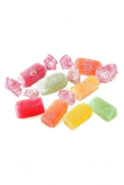Sestavine: sladkor, glukozni sirup, želirno sredstvo pektin, stabilizator polidekstroza, sadni sok: pomaranča, jagoda, limona, jabolko, malina, hruška, regulator kislosti – mlečna in citronska kislina, barvila: E163, E160c, E160a, E100, E132, aroma: pomaranča, jagoda, limon, jabolko, malina, hruška. Hranilna vrednost 100g produkta: Energijska vrednost 1380kJ /320kcal, Maščobe 0g, Od tega nasičene maščobe 0g Ogljikovi hidrati 80g od tega sladkorji 59g,